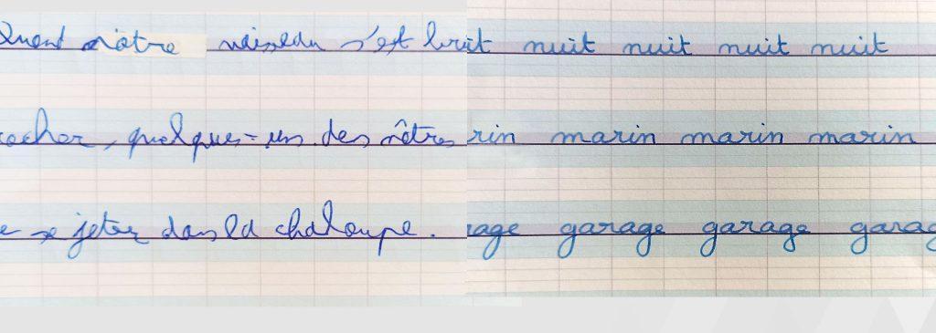 AVANT : « Mon écriture est souvent illisible, je dois relever très souvent la tête pour vérifier l’orthographe. »